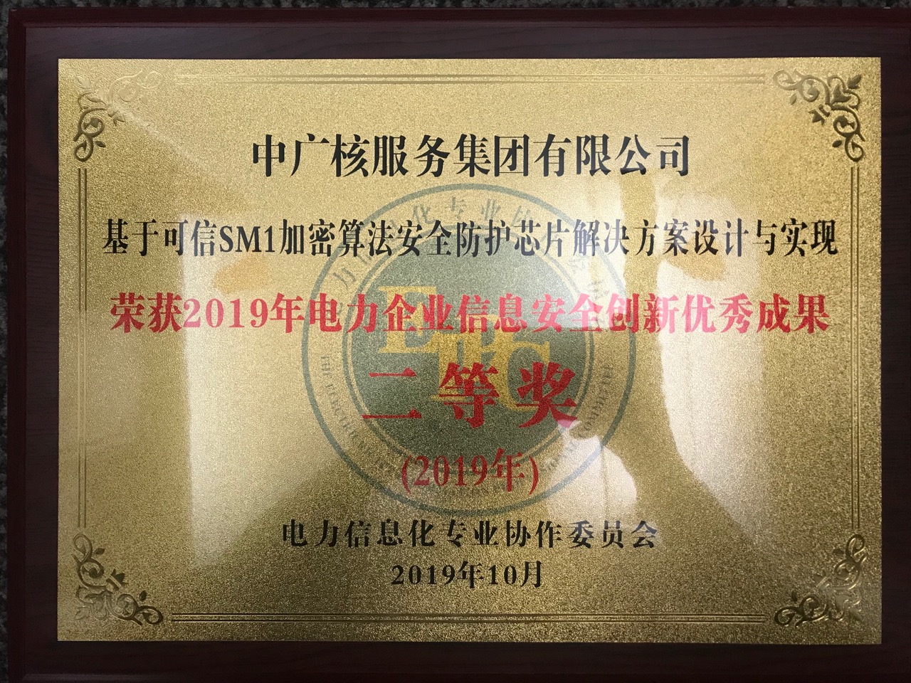 2019年10月17日,由電力信息化專業協作委員會主辦的2019(第八屆)電力企業信息安全研討會在南京舉行,來自全國100多家電力企業和10多家電力安全廠商的信息化安全主要負責人、專家參加了本次大會。電力信息化專業協作委員會為獲得“2019(第八屆)電力企業信息安全管理創新成果、優秀論文”的企業頒獎。本次評選活動參評單位來自全國100多家大型國有企業,共收到企業申報成果241項,投稿論文383篇,專家評委從基礎能力、實用性、創新性和合規性等多維度,歷經“形式審核、專家評審、評委會最終審定”評選流程,共評選出63項成果榮獲創新成果獎、105篇論文榮獲優秀論文獎。中廣核服參評的“基于可信SM1加密算法安全防護芯片解決方案設計與實現”憑借其先進性、高安全性、創新性等特點獲得專家評委的一致認可,獲得了“創新成果二等獎”。