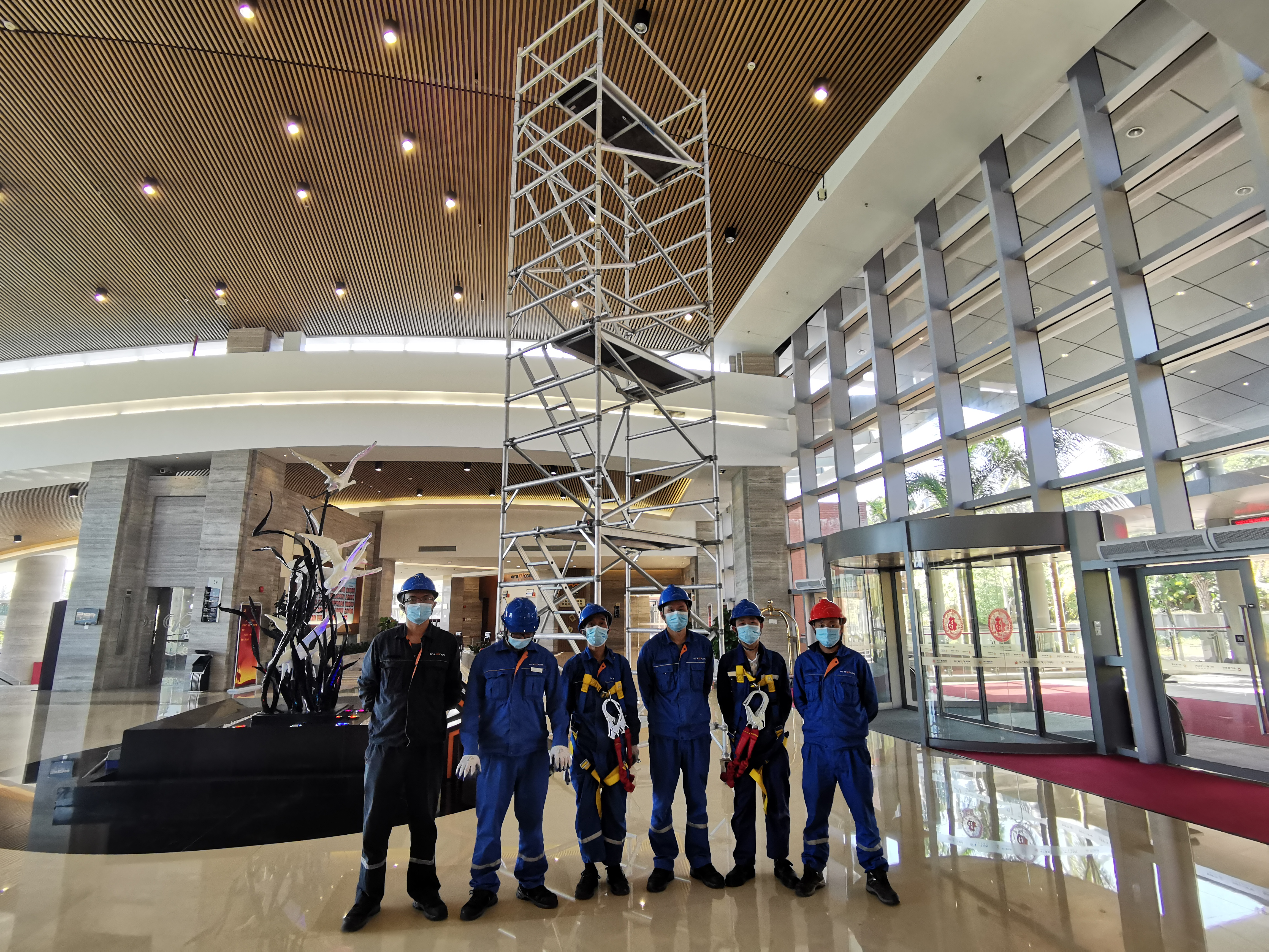 利用春節間歇期對長灣領導力發展中心公共區域的高空筒燈進行維修。