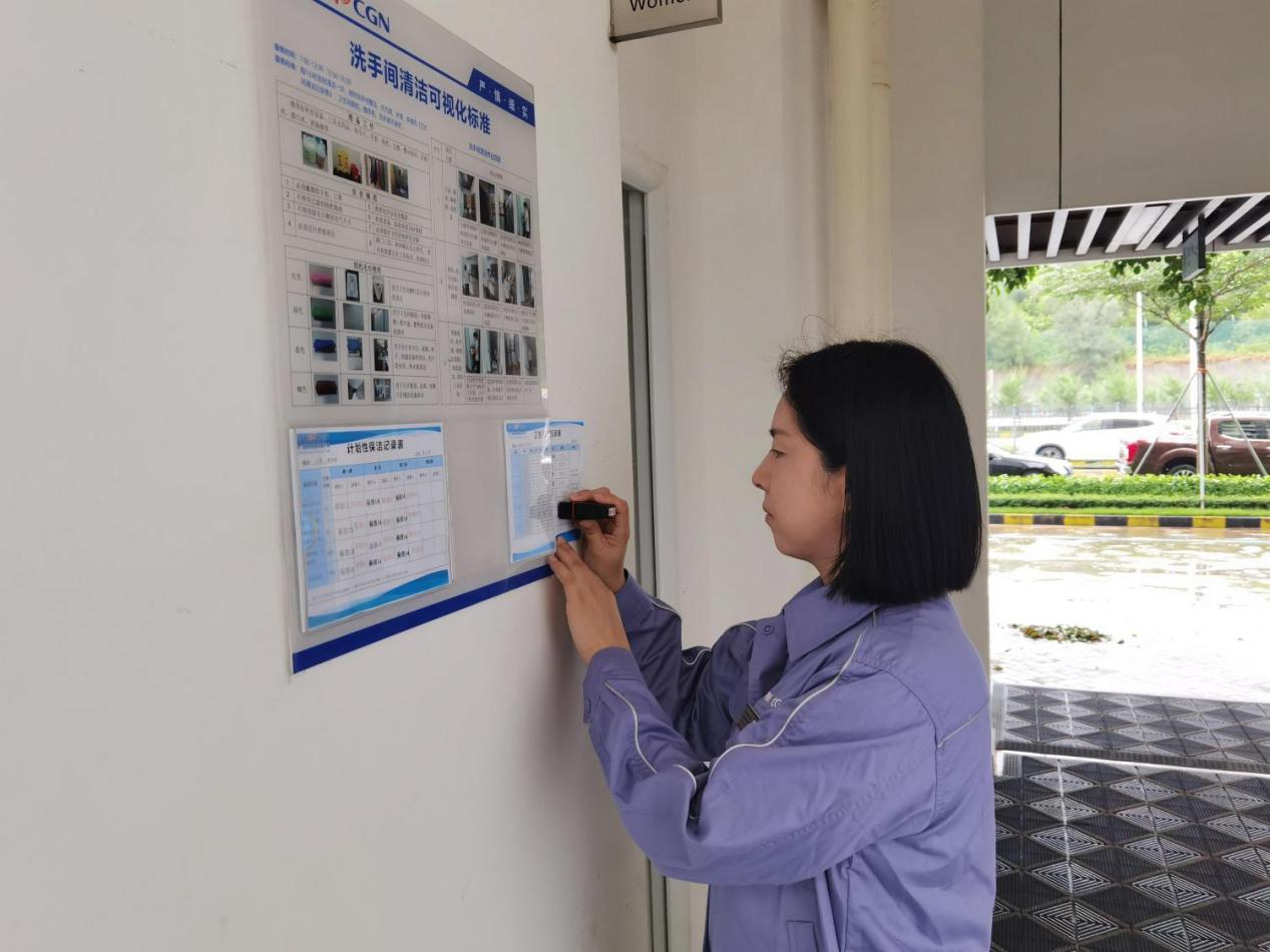 物管員李曉芳的身影活躍在陸核辦公生活區的各個角落。從宿舍樓到餐廳、再到辦公樓;從觀光電梯的平穩運行到走廊燈的明亮溫馨,再到確保消防栓、滅火器的完好無損、有效可用等。她檢查設施,巡視環境,在各個區域的巡檢記錄表上進行登記。她的手機24小時待命,隨時準備接聽電話解決突發問題,為陸核辦公生活區的員工及家屬們排憂解難,用高度的責任心和實際行動確保節日期間陸核辦公生活區的正常運行與安全。