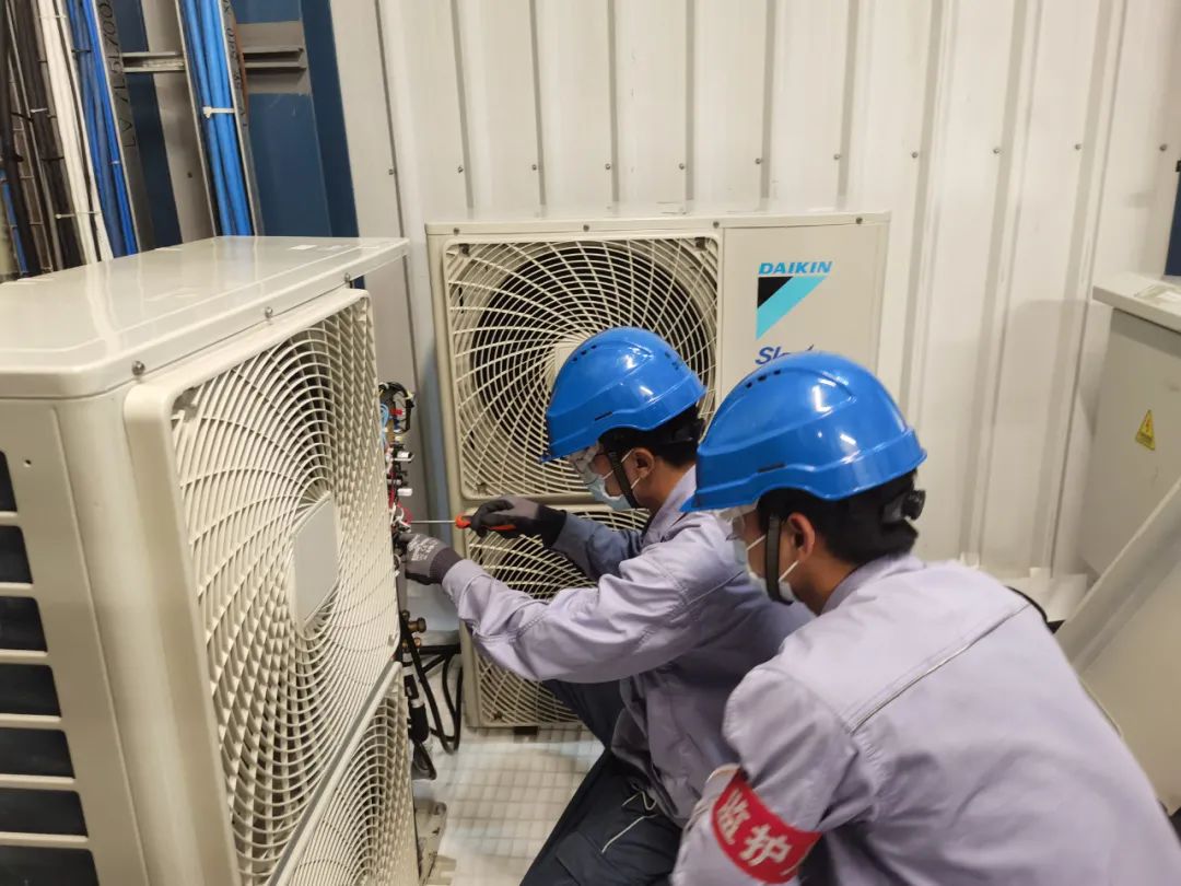 在春節這特殊的節日,面對大修深度重疊,機電公司陽江檢修項目部廠內空調班組大修工作任務重,時間緊,在兩個大修中承擔著安裝臨時空調/飛機空調及大修集裝箱保駕等任務,還要兼顧空調日常的維護保養。班組全員選擇無休,加班加點,堅守在大修現場一線,為改善大修現場的檢修環境,他們堅守崗位,認真細致工作的身影構成了春節期間的一道絢麗的風景線。