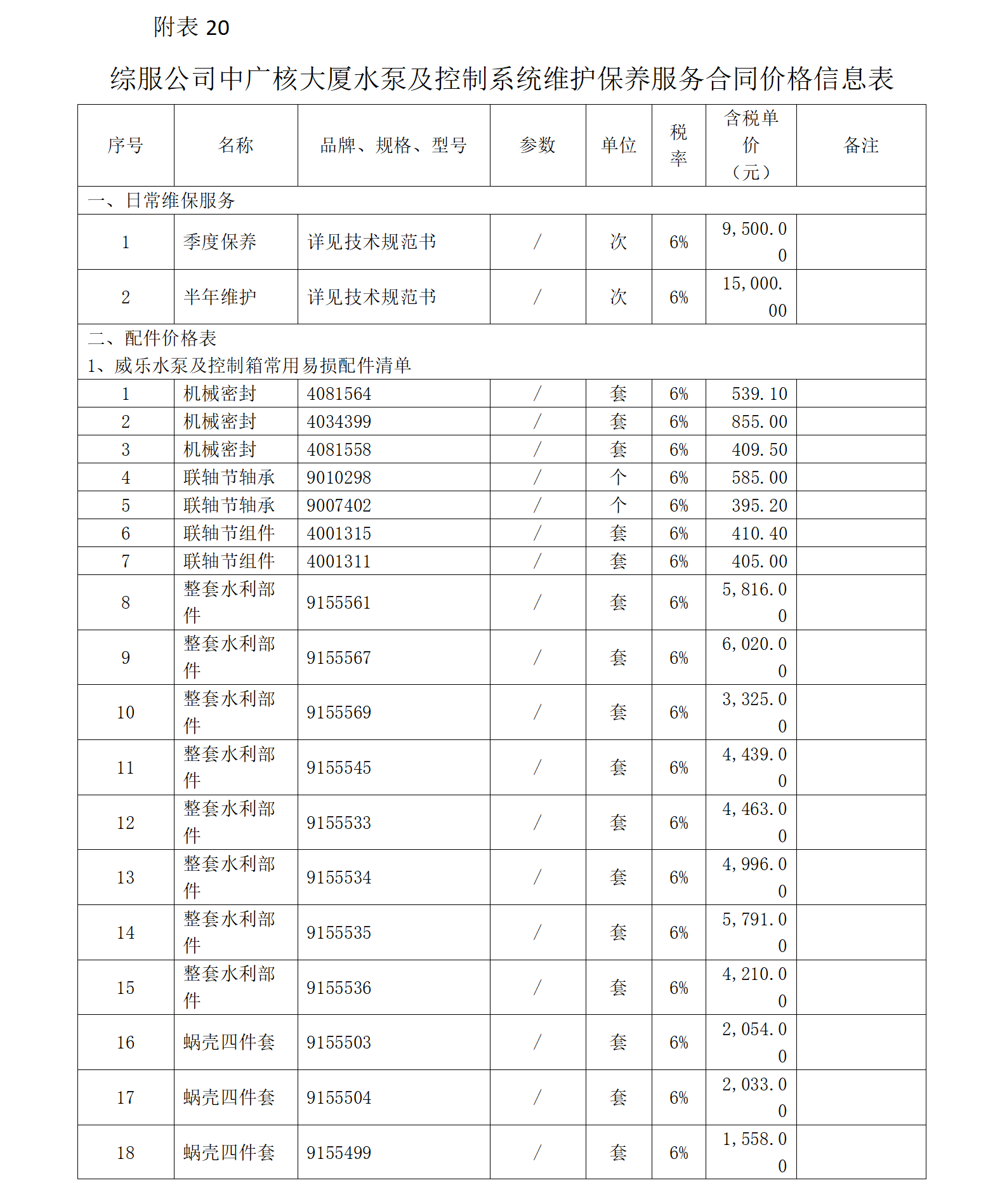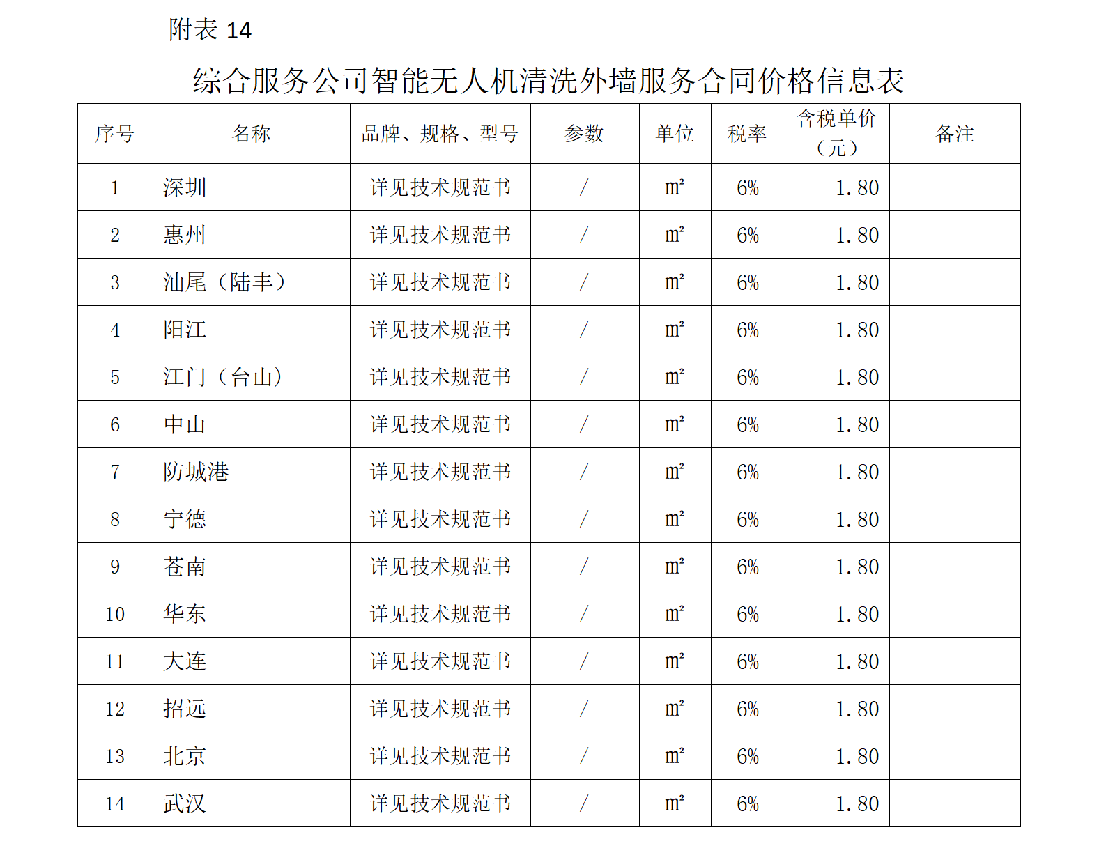 中廣核服務集團有限公司外部合同供應商與合同價格信息公開表(第四期)